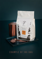Made from ground 63% dark bean to bar chocolate, with delightful tasting notes of caramel and candied tropical fruits.